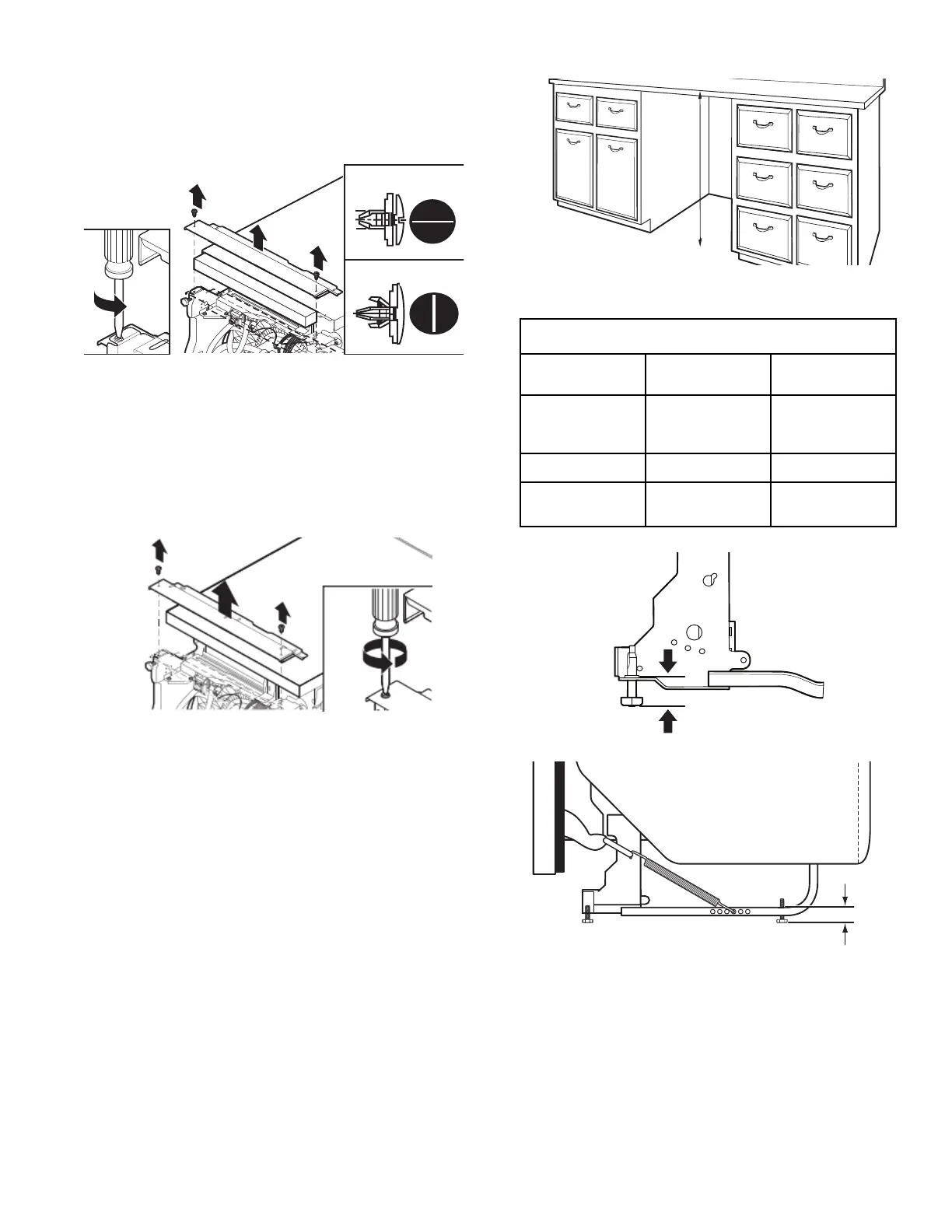 Tableau de réglage de la hauteur du lave-vaisselle