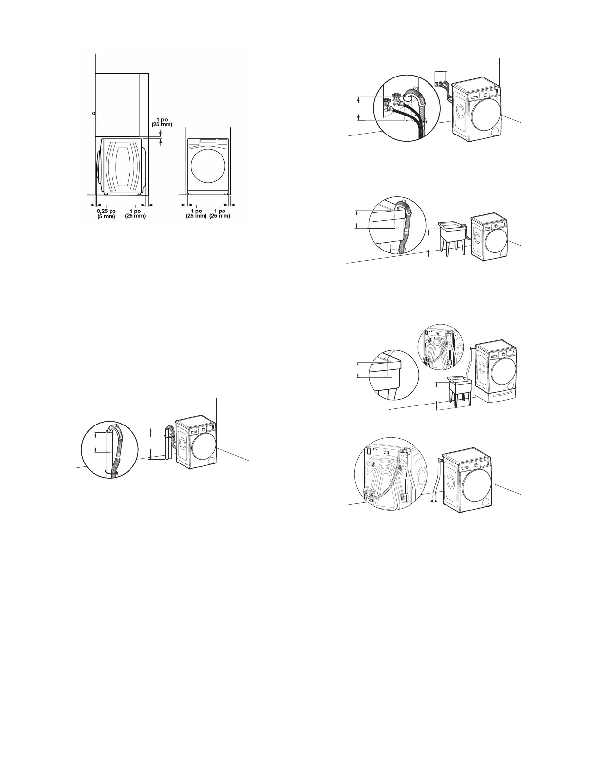 28 po (710 mm) à partir du fond de la laveuse. (Des tuyaux