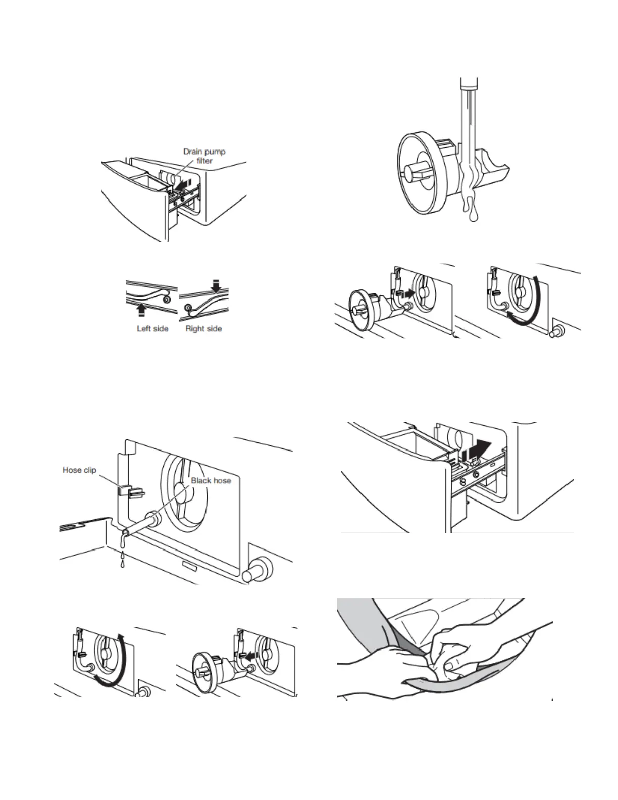 water still in it. Then remove the drain pump filter by turning it