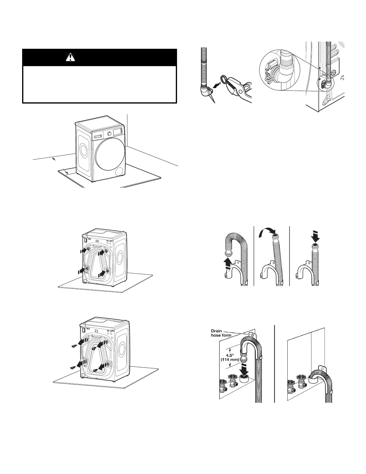 IMPORTANT: 4.5" (114 mm) of drain hose should be inside