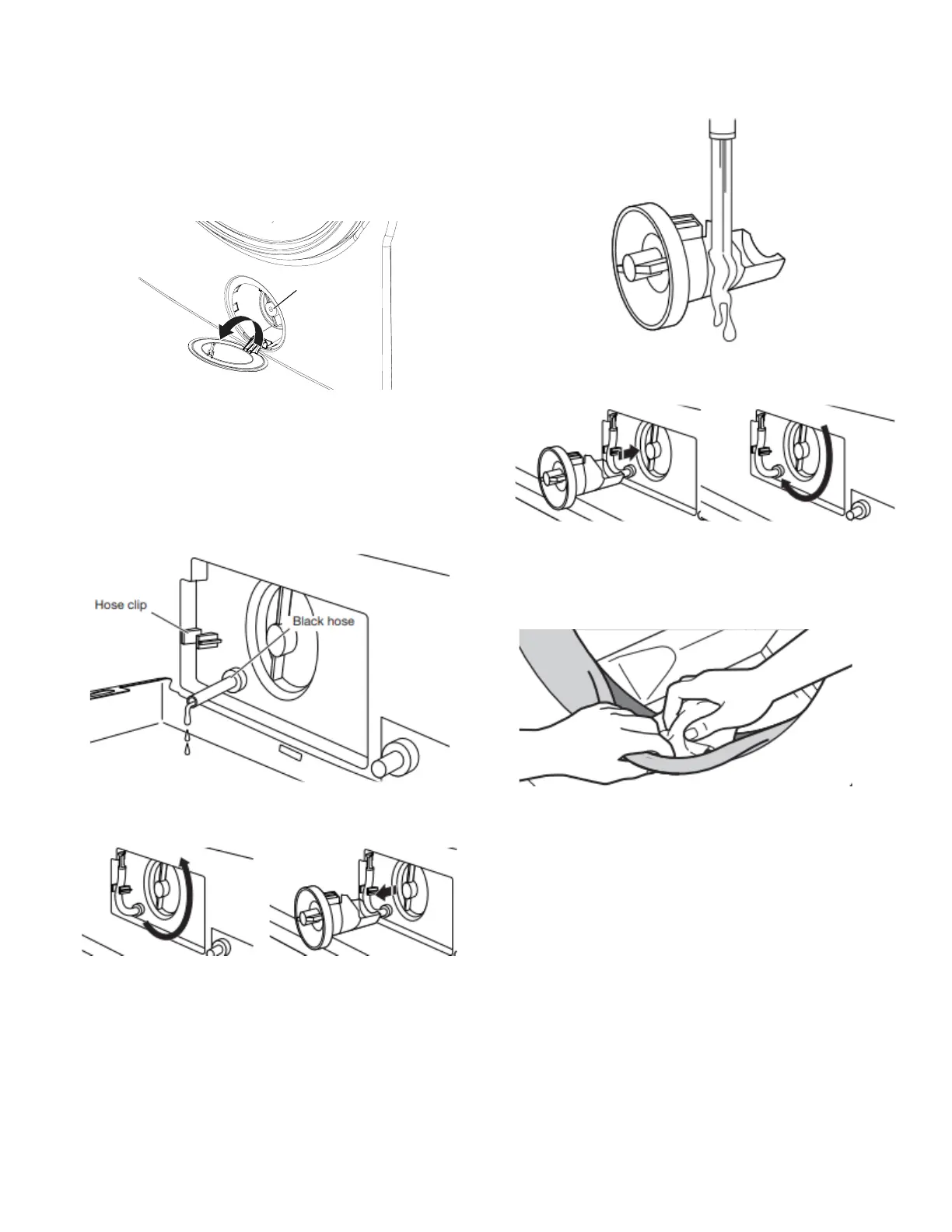 all the water has drained. Make sure that the black hose is