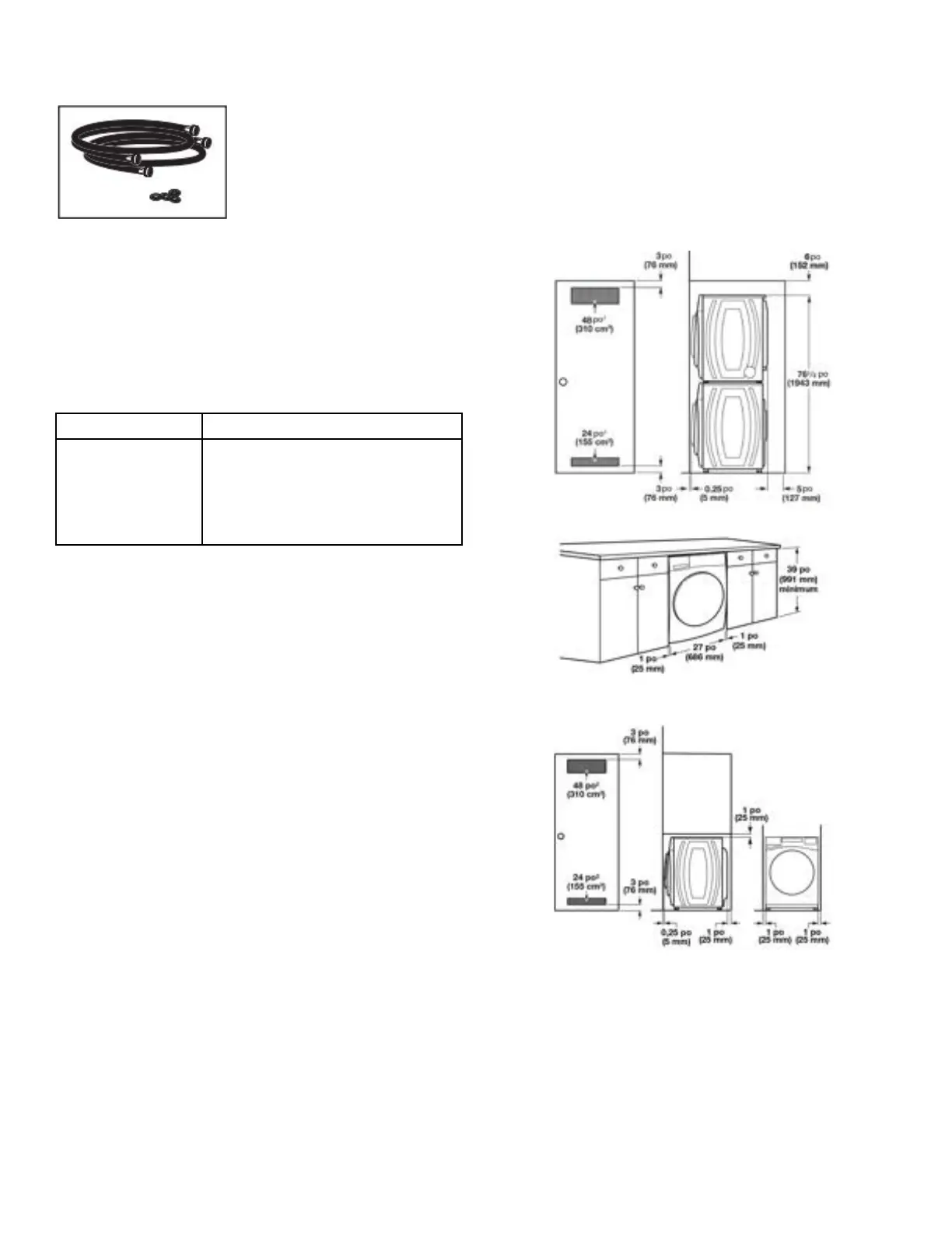 1 po (25 mm) sous l’ensemble de la laveuse. Il n’est pas