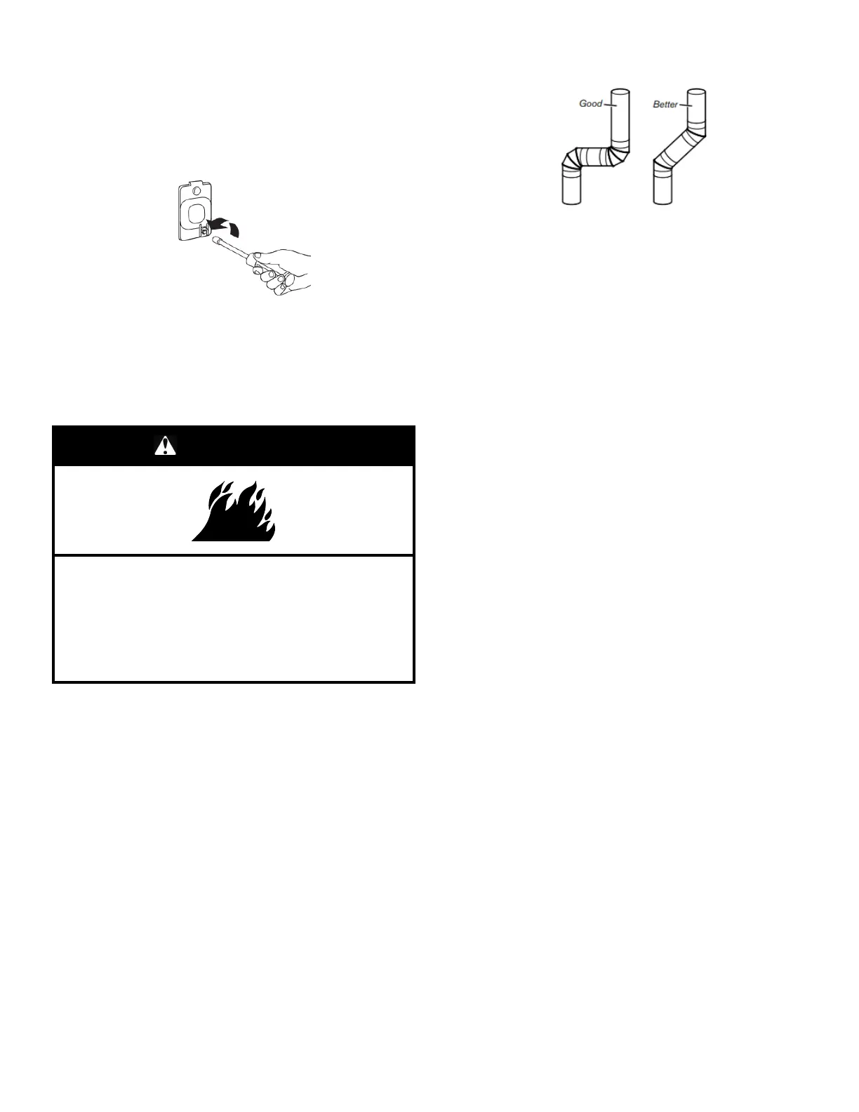 � Use no more than four 90° elbows in a vent system; each bend