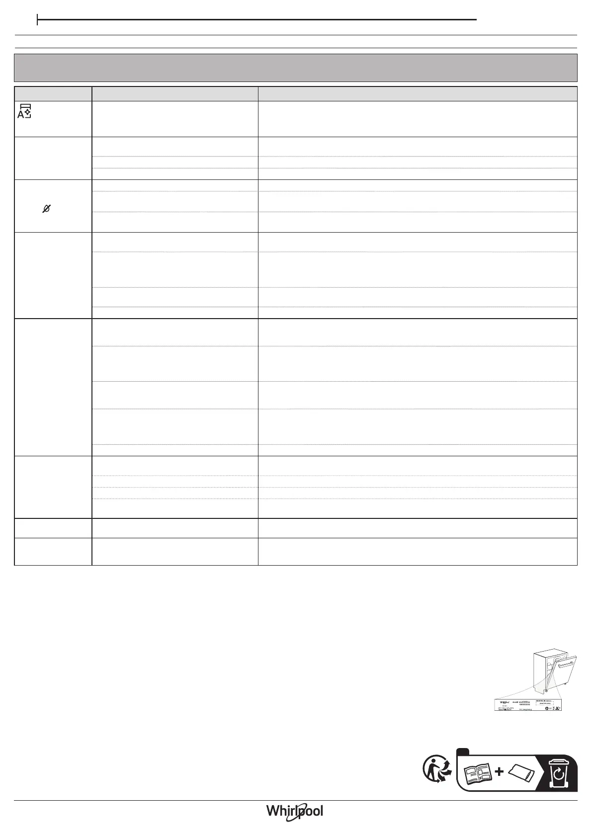 Si votre lave-vaisselle ne fonctionne pas correctement, vériez si le problème peut être résolu en suivant la liste ci-après. Pour d’autres