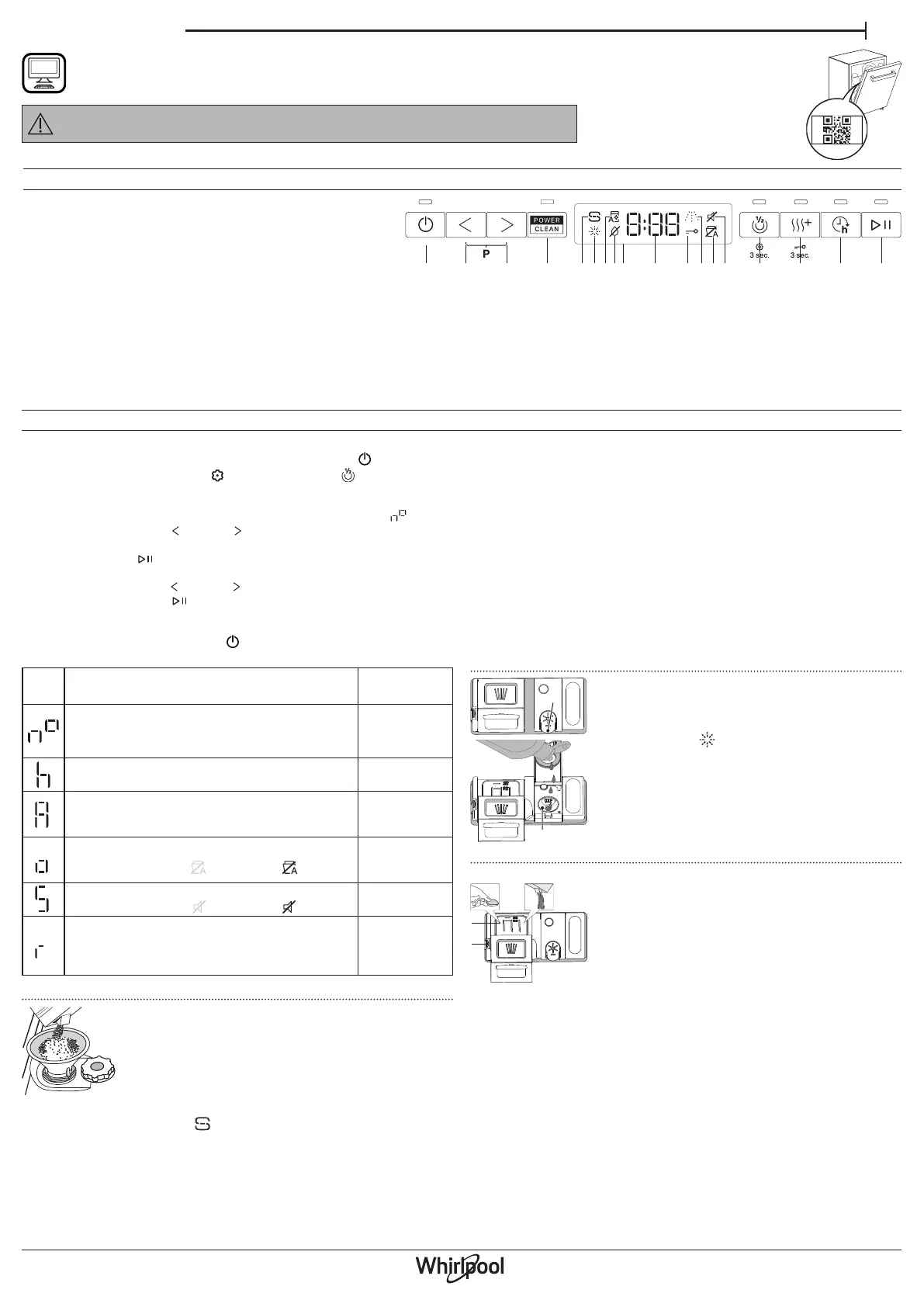 • Posodo za sol je treba napolniti, ko na nadzorni plošči sveti signalna