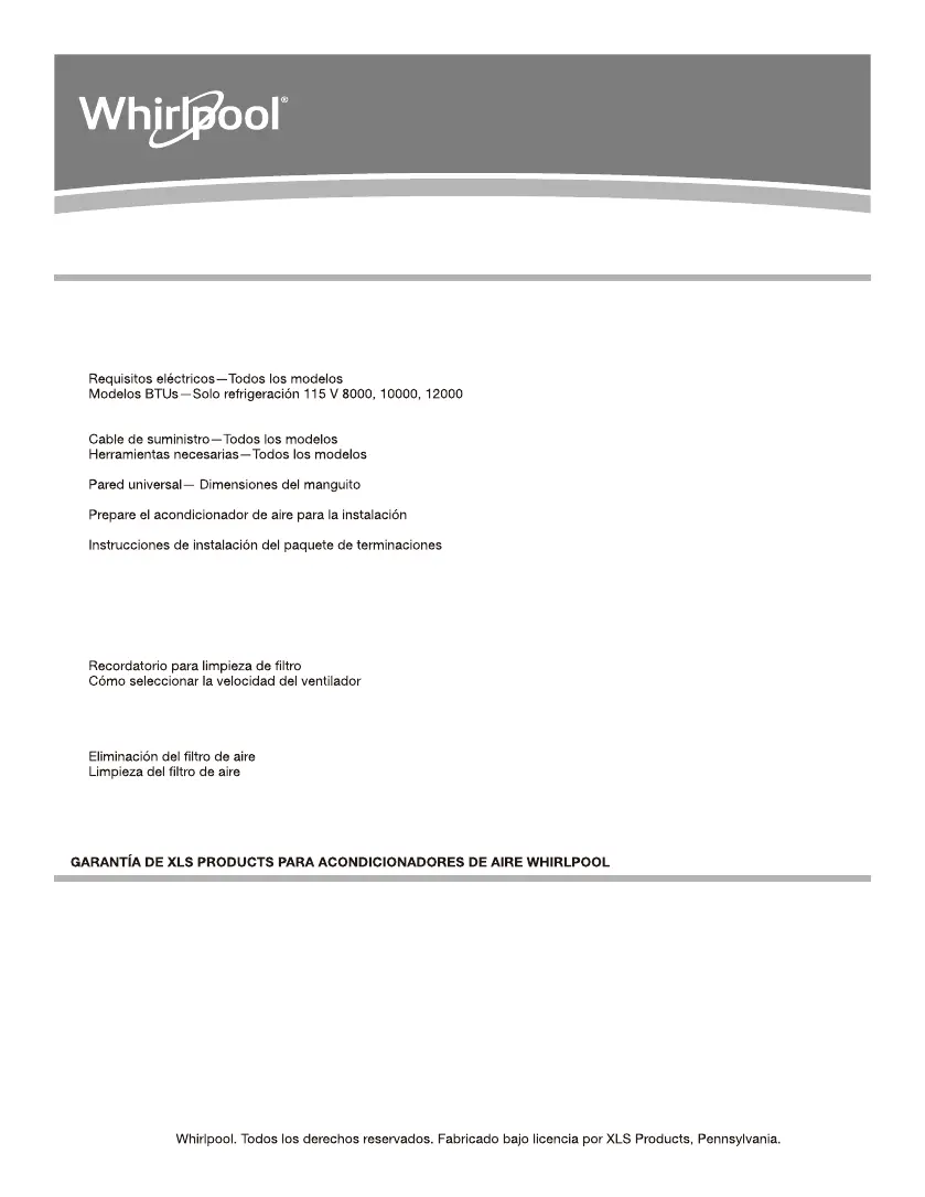 Modelos BTUs—Solo refrigeración 230 V 10000, 12000, 14000 .............................................................................................. 36