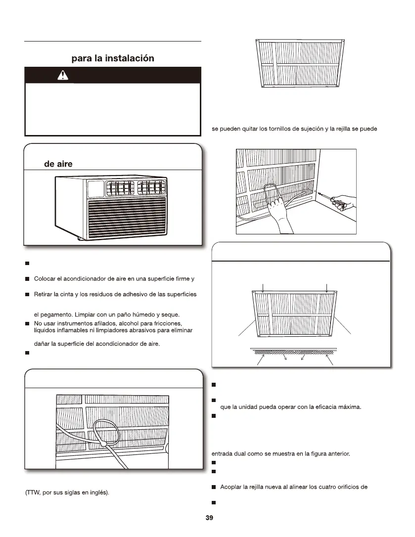 Colocar la rejilla incluida con el nuevo acondicionador de aire