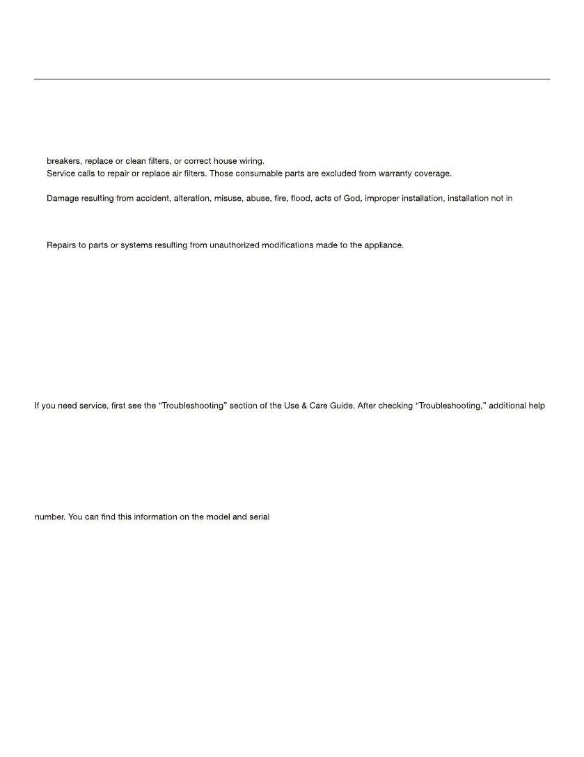 1. Service calls to correct the installation of your product, instruct you how to use your product, to replace house fuses or reset circuit