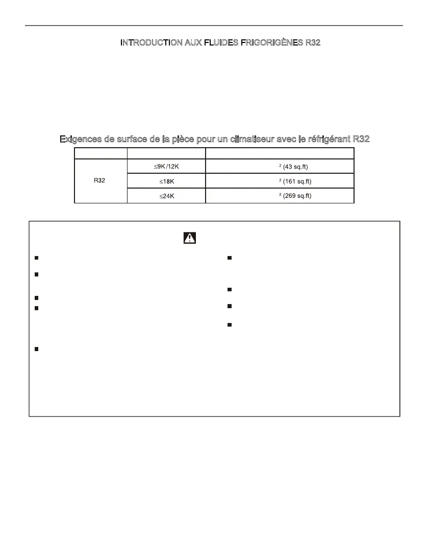 Exigences de surface de la pièce pour un climatiseur avec le réfrigérant R32