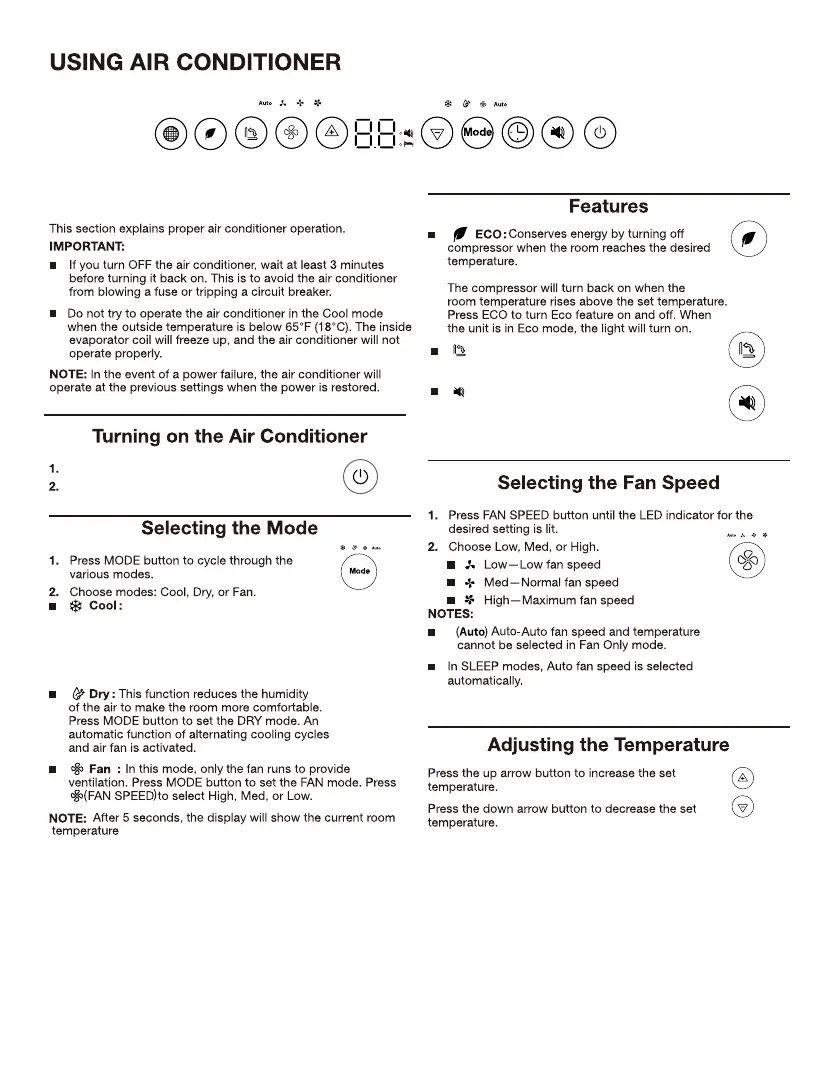 MODE button to set the cooling function.