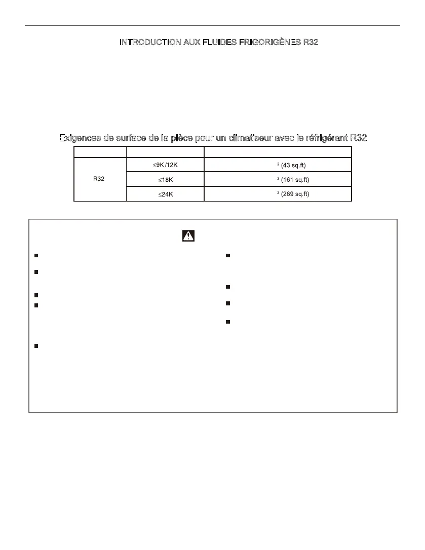 a aucun danger de combustion ou d'explosion si vous respectez le tableau ci-dessous lors de l'installation de votre climatiseur