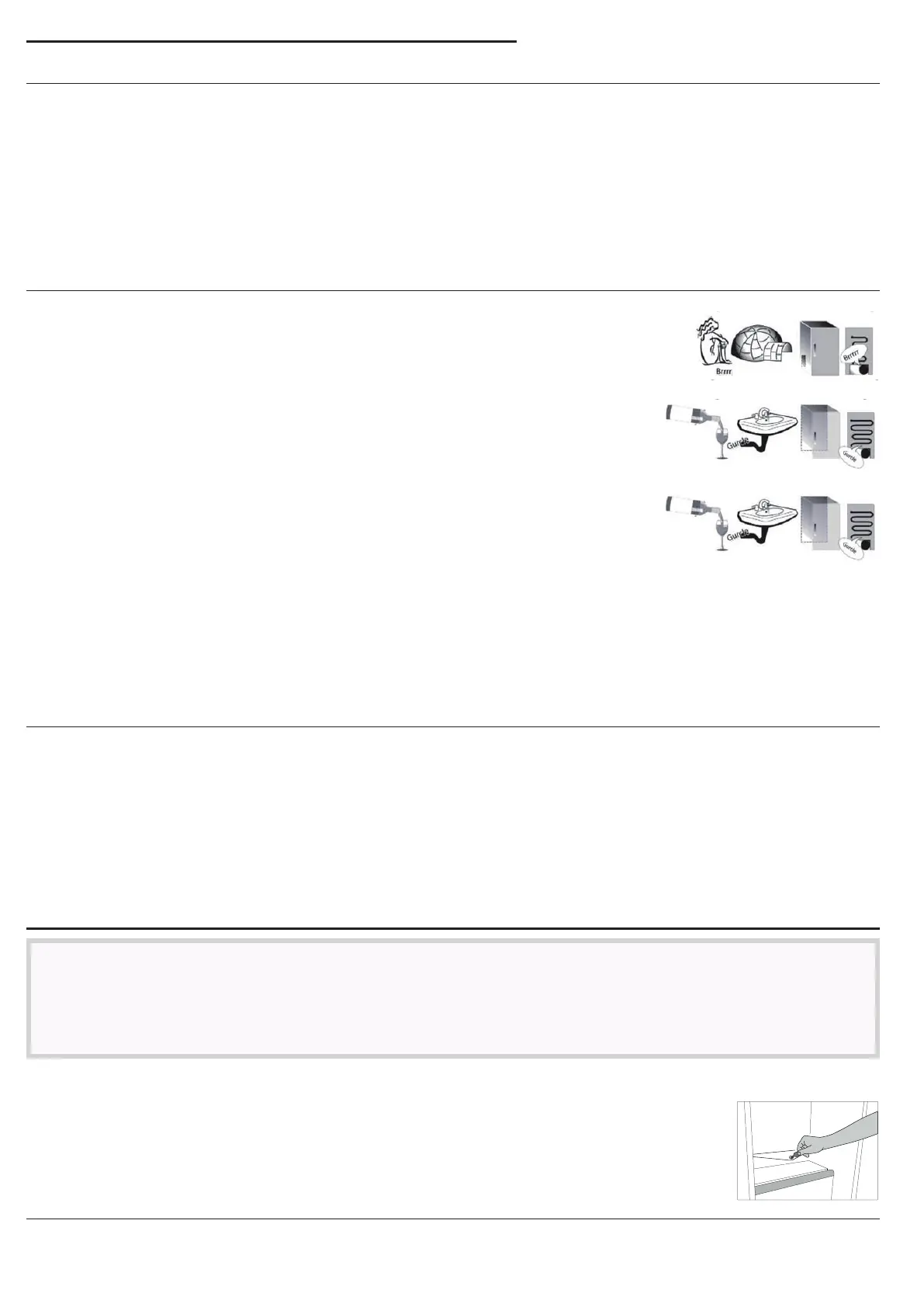 2. За да обезскрежите, изключете уреда и извадете чекмеджетата. Поставете замразените храни на хладно място.