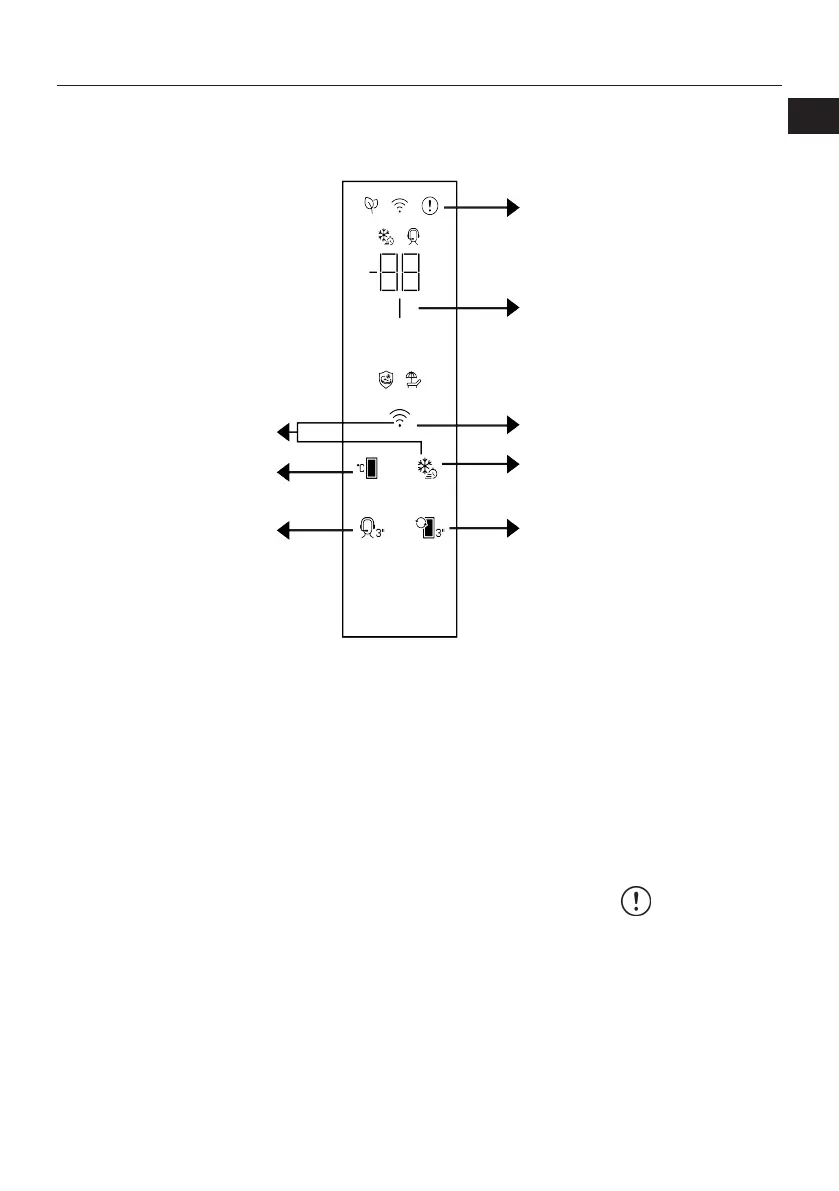 1 Foutstatus indicator 2 Energiebesparing (scherm uit) indica-