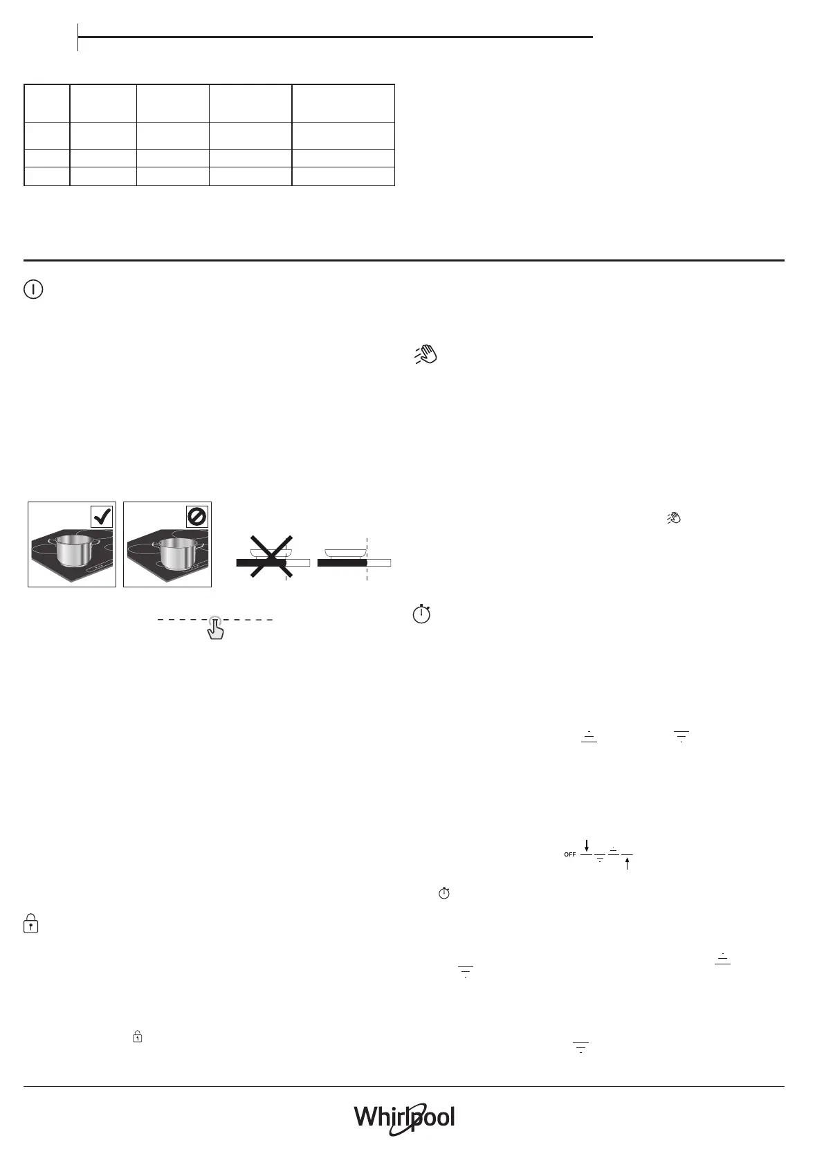 verrouillage pendant 3 secondes pour déverrouiller la table de cuisson.