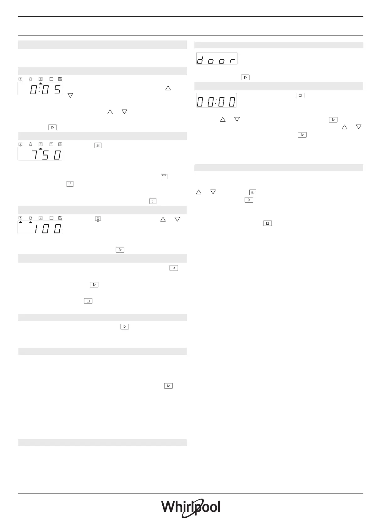 ili . Pritisnite kako biste podesili snagu na 0 W, a