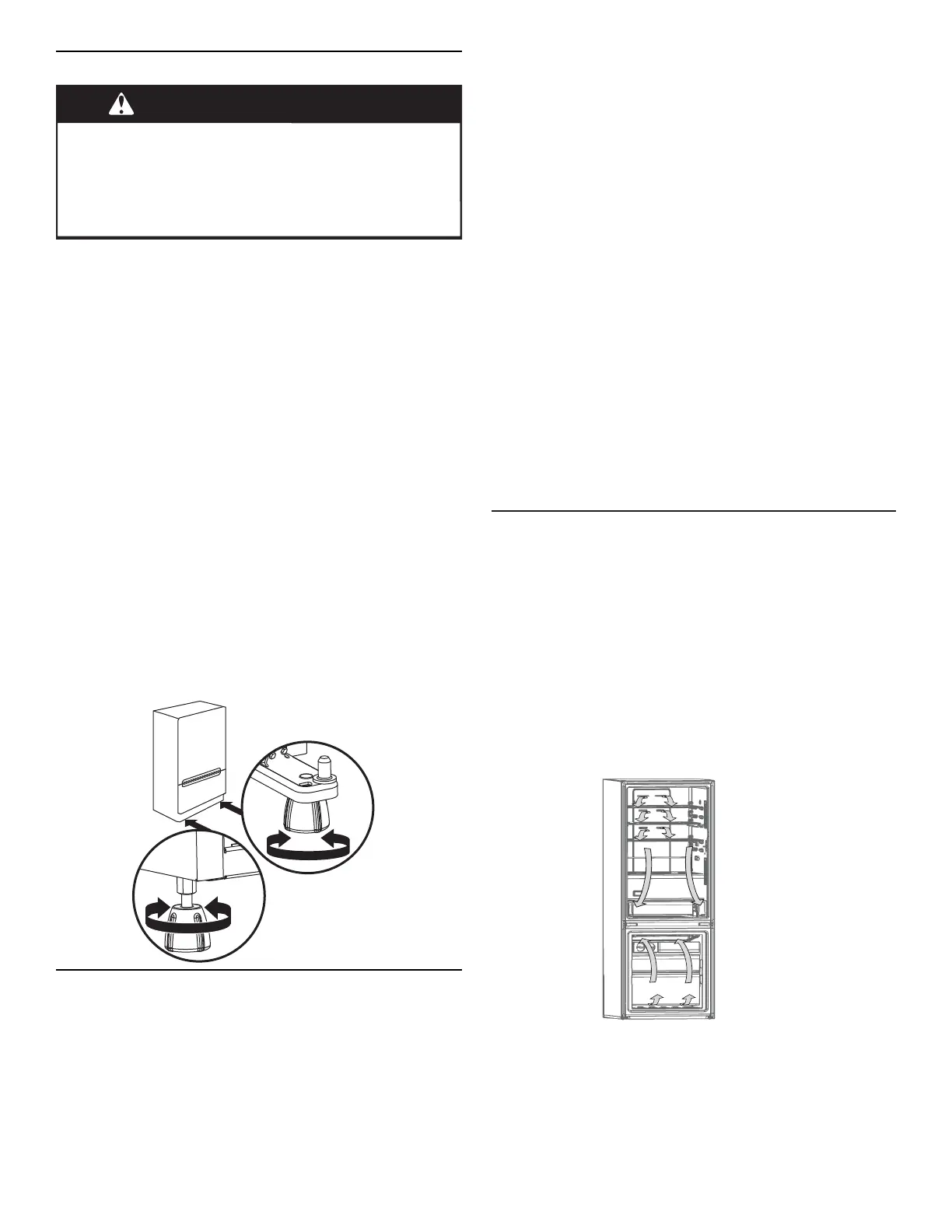 de nivellement et ajuster l’inclinaison du réfrigérateur.