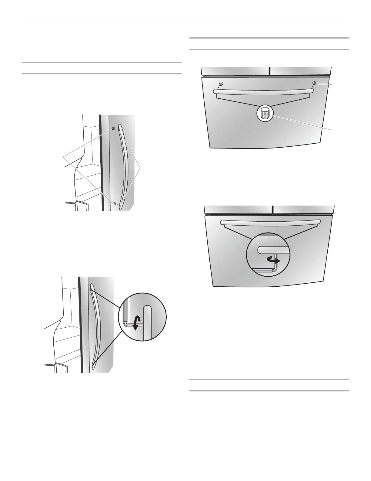 2. Ouvrir la porte du réfrigérateur. Placer la poignée sur les vis à