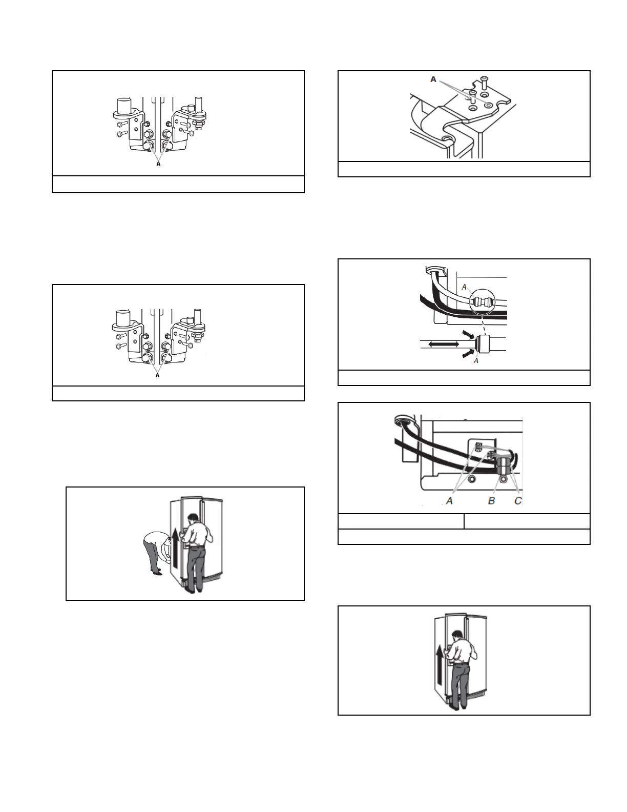 8. Lift the refrigerator door enough to insert the door onto the