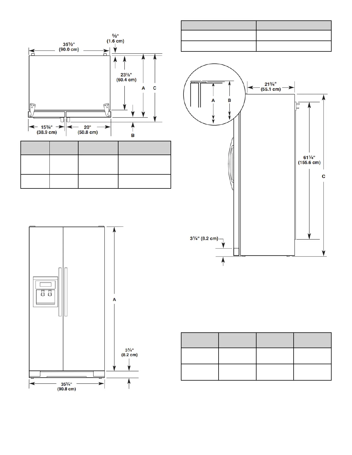 réfrigérateur, ajouter 3/4 po (19 mm) à la hauteur totale.