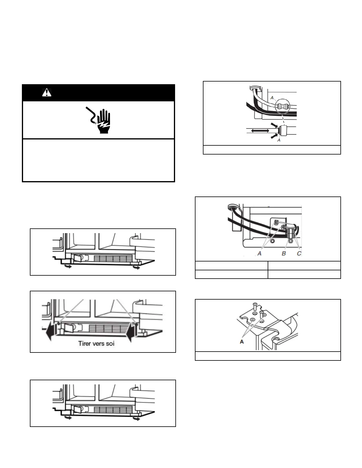 IMPORTANT : Ne pas retirer les vis A. Tenir la porte pendant