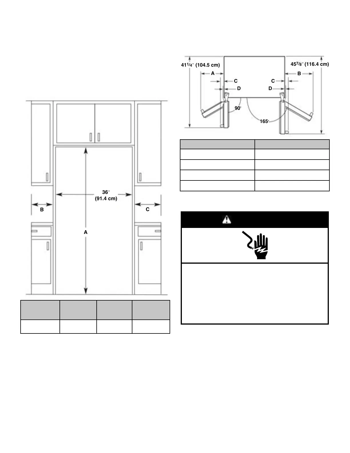 fully open the freezer door and “C” represents the distance
