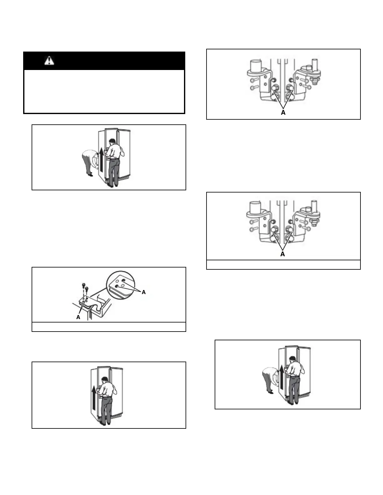 IMPORTANT: Ne pas retirer les vis A. Tenir la porte pendant