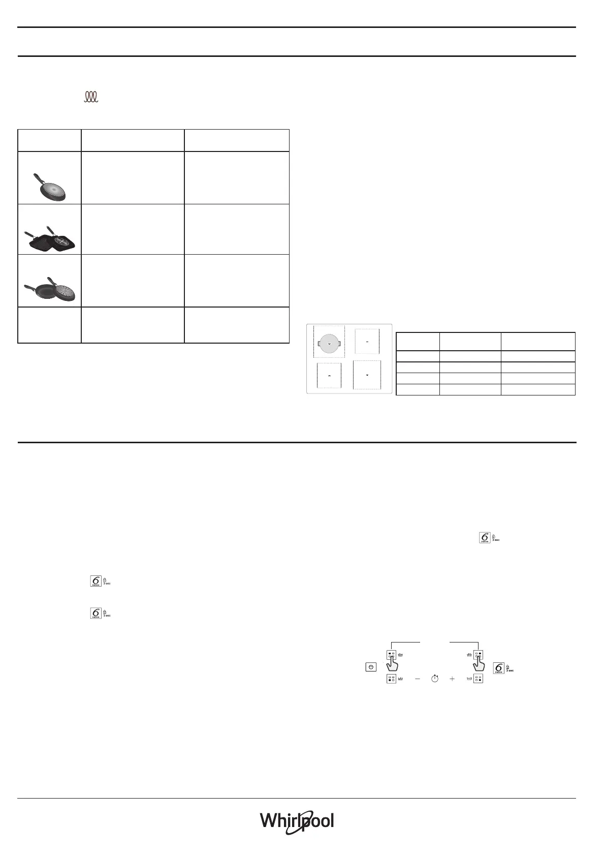 each zone (refer to the table below). Please note that cookware manufacturers