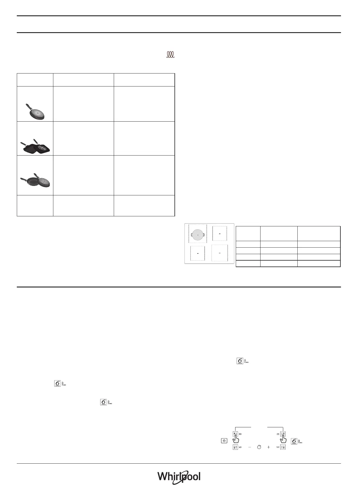 каструлі з відповідним діаметром дна для кожної зони (див. таблицю