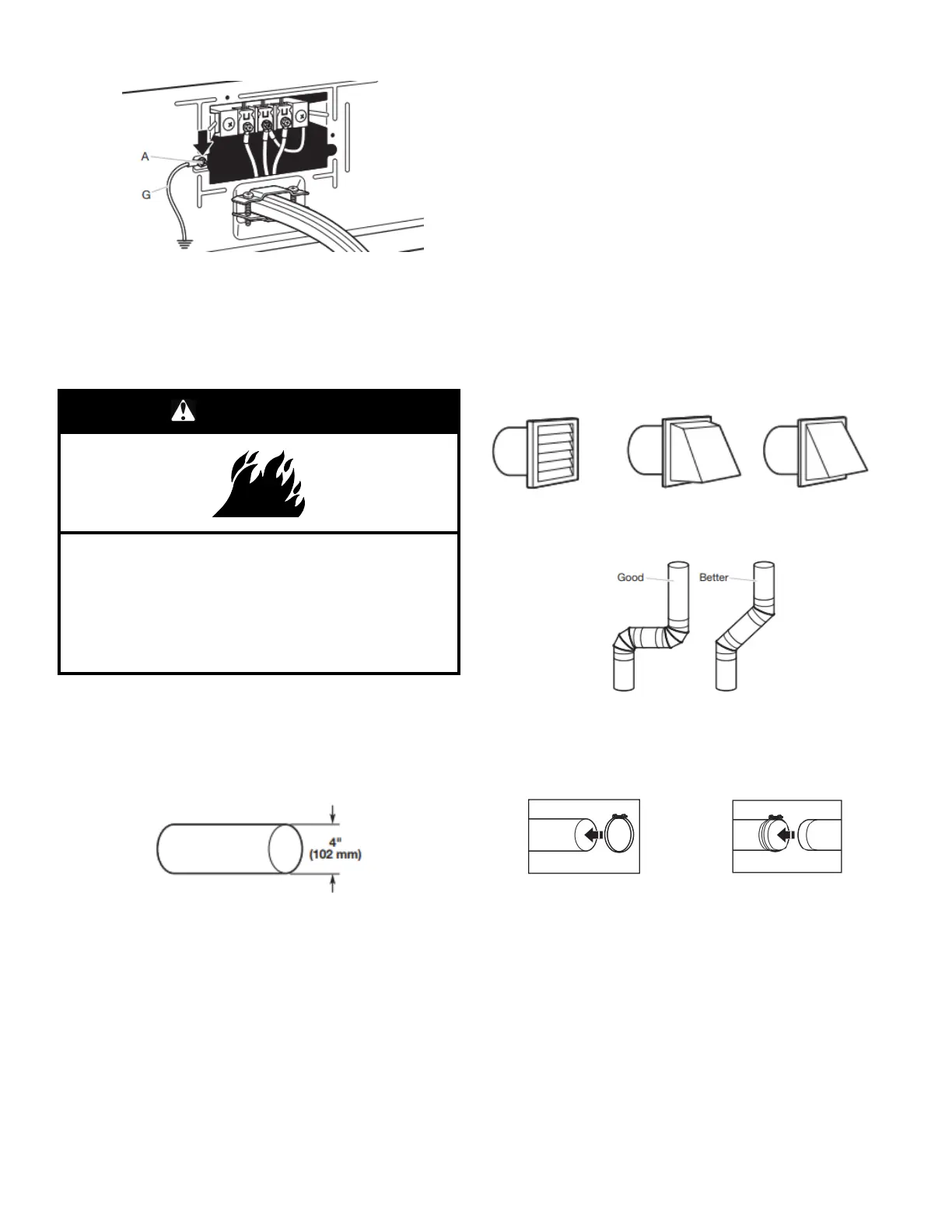 Only a 4" (102 mm) heavy metal exhaust vent and clamps may