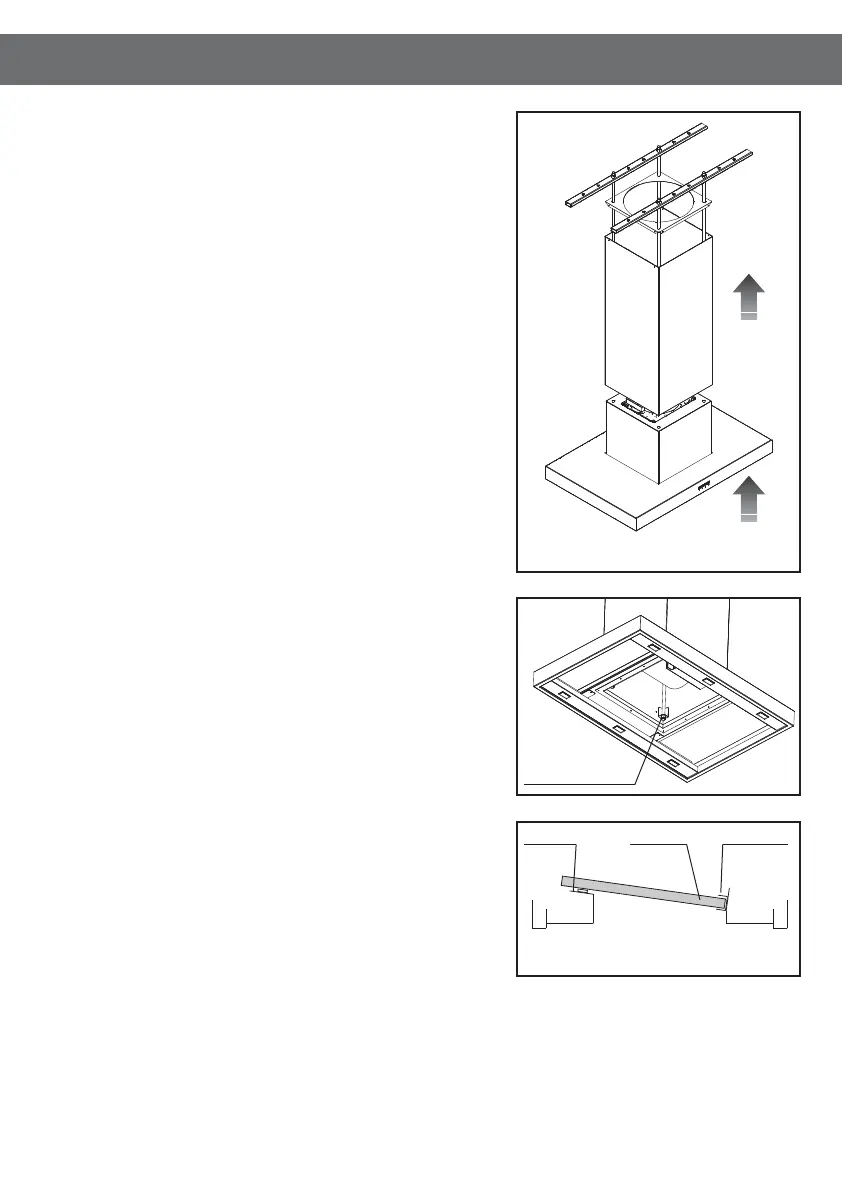 Lift the stainless steel chimney into position and secure to the Ceiling Bracket with