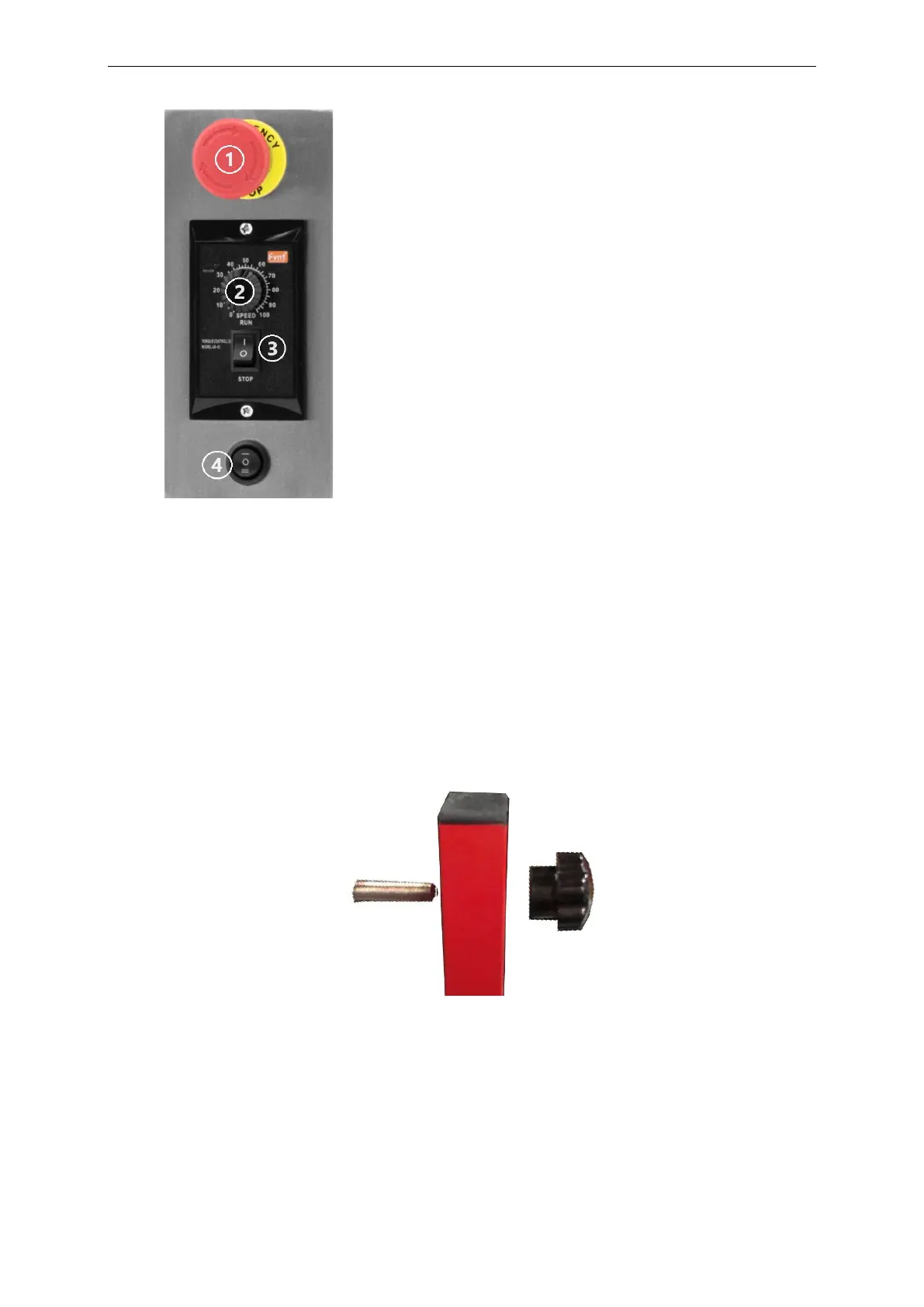 1 – Noodstop. Wanneer de knop wordt ingedrukt, wordt de