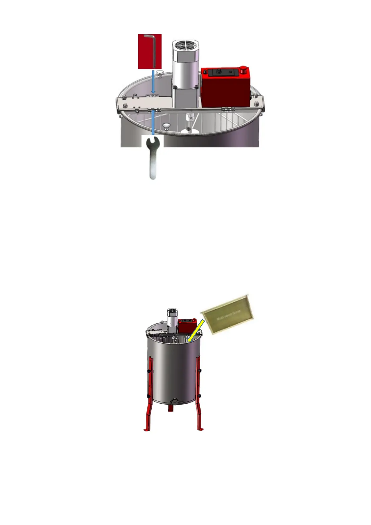 Insérez les cadres (nids d'abeilles) dans le panier intérieur de la machine. Chargez-en deux ou quatre sur les côtés opposés