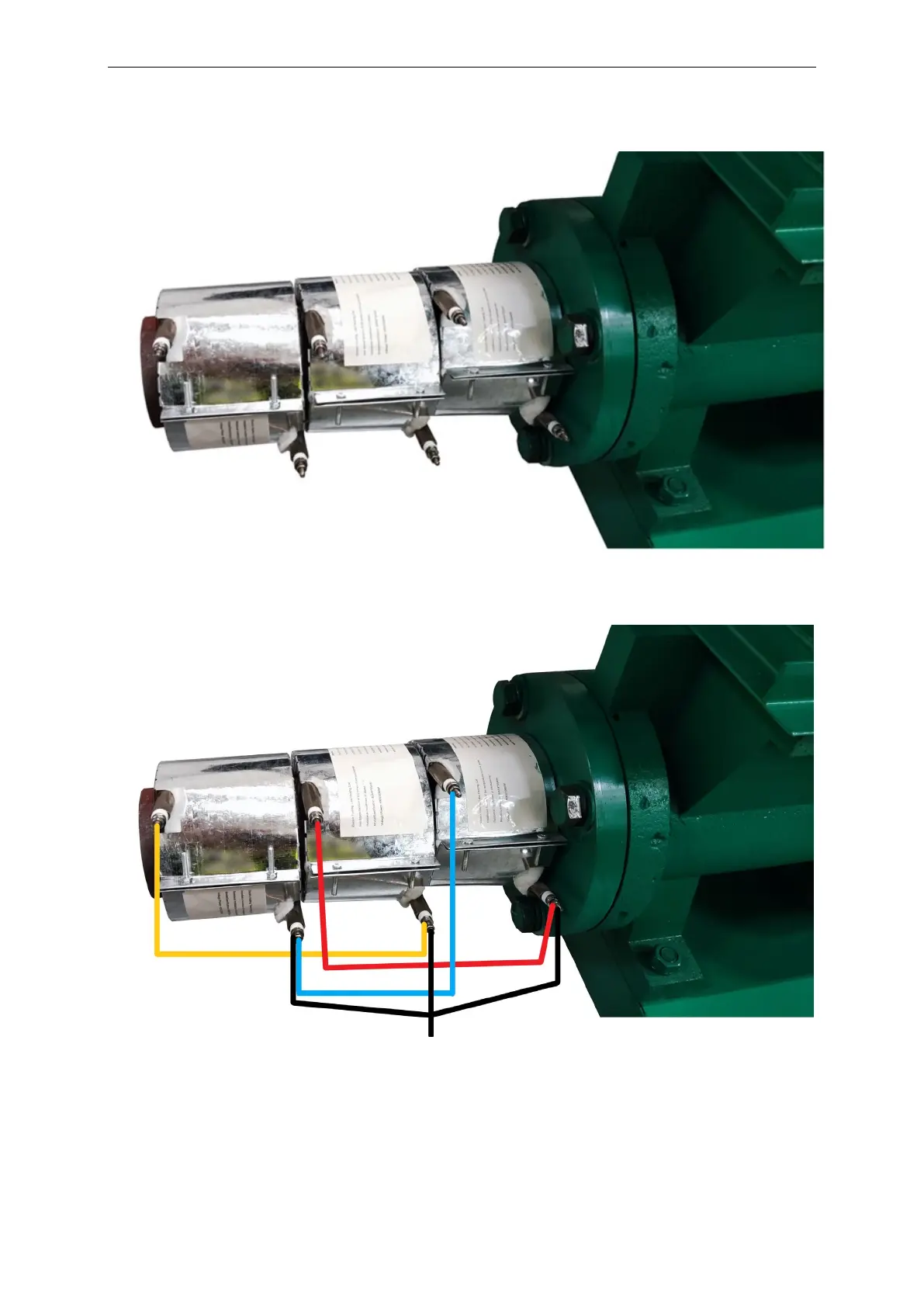 Schließen Sie die elektrischen Drähte an die Klemmen an, die aus den Heizelementen