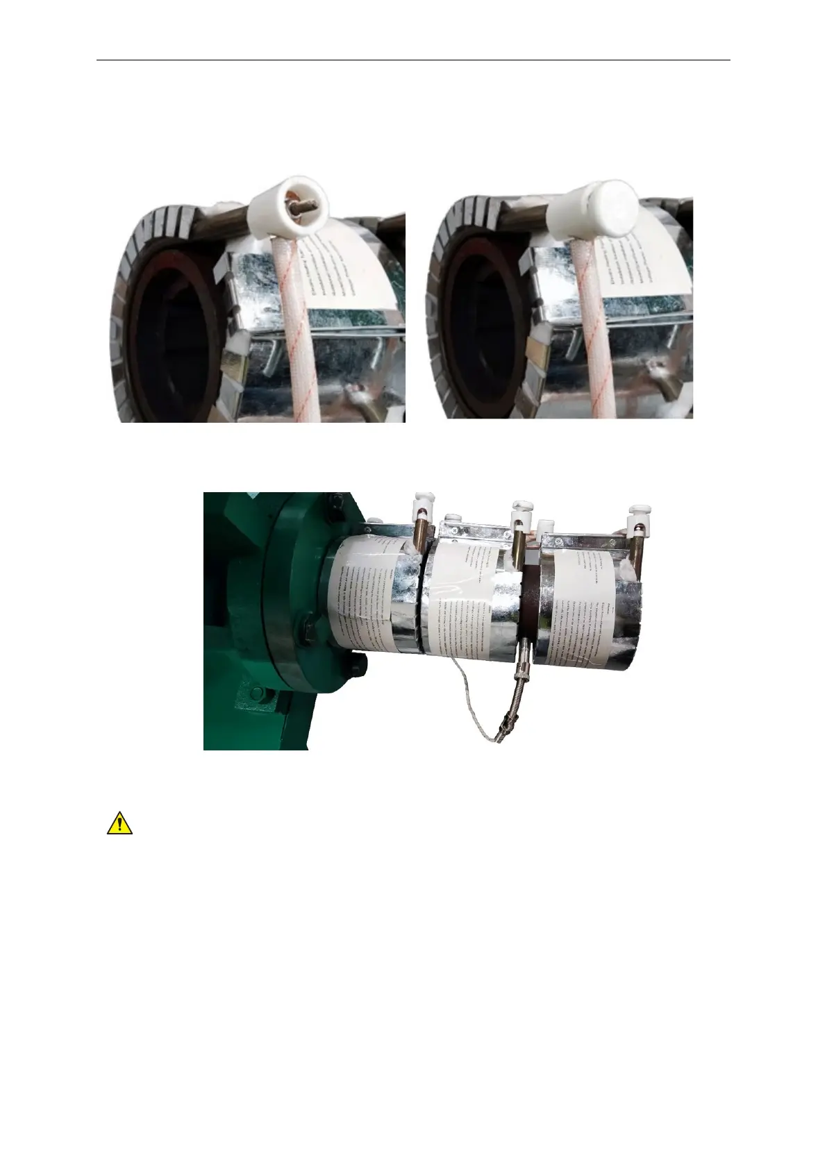 Umieścić czujnik temperatury pomiędzy elementami grzewczymi, w małym otworze w