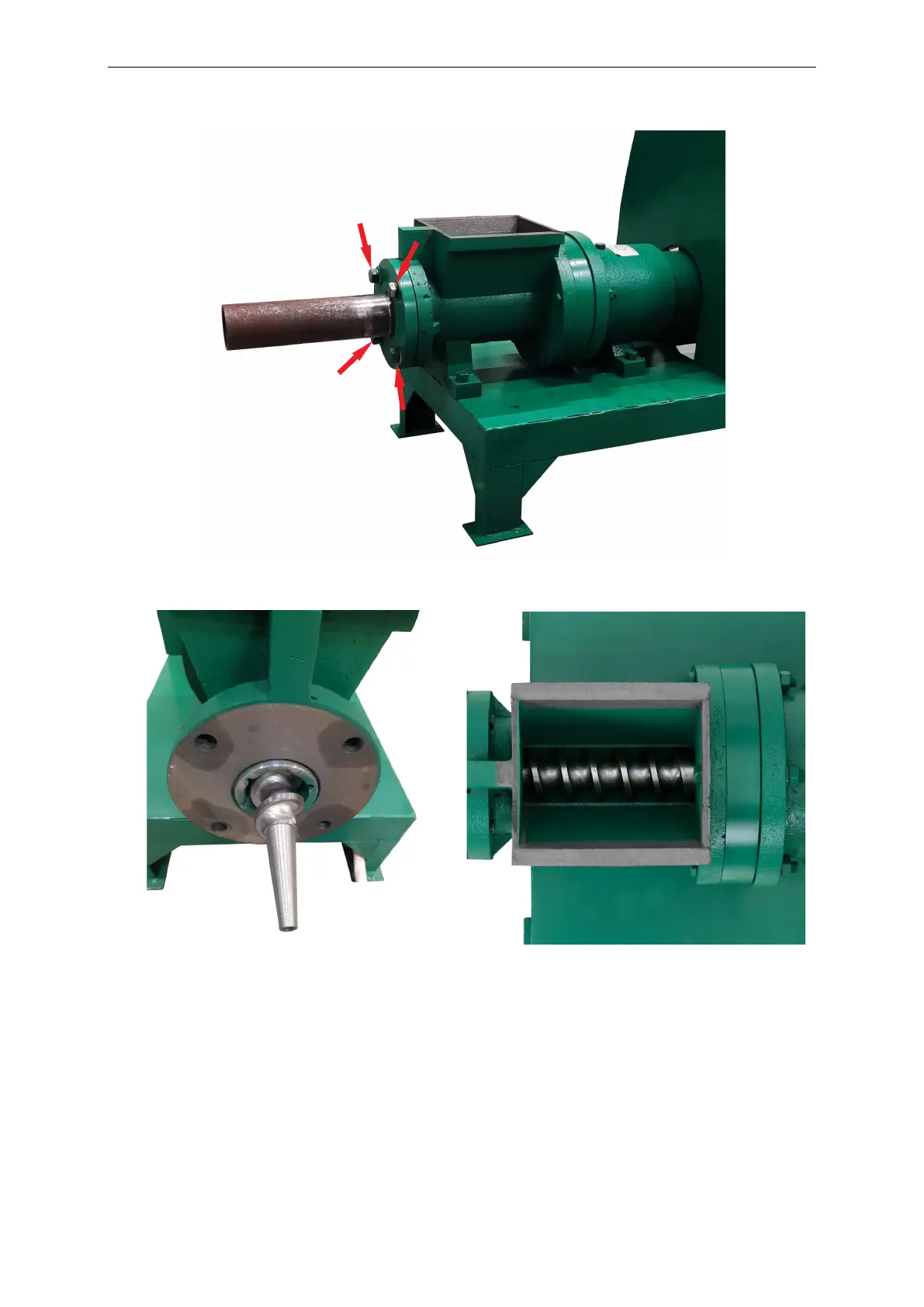 Odstraňte čtyři šrouby umístěné na přírubě spojující výstupní hrdlo s tělem stroje