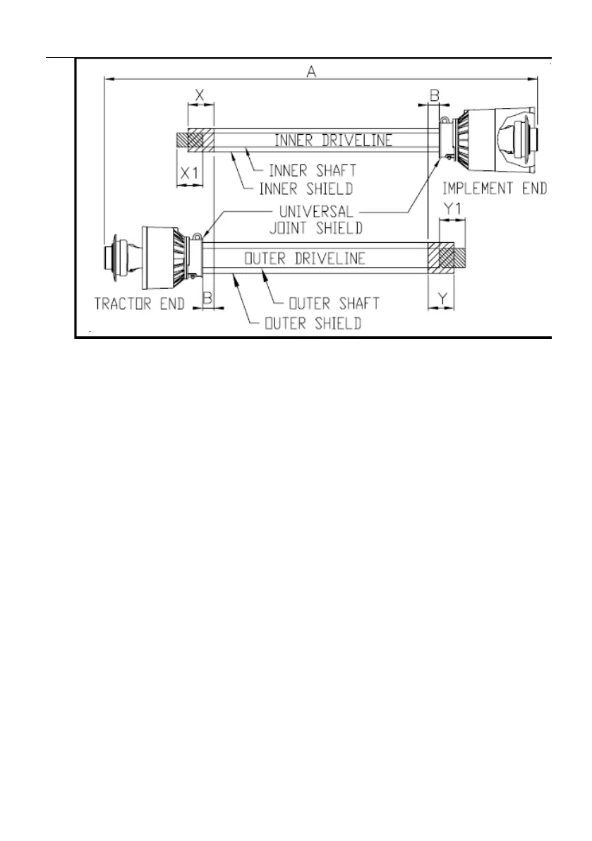 a) Messen Sie 1" (Maß "B") von der äußeren Kardanwellenabdeckung nach