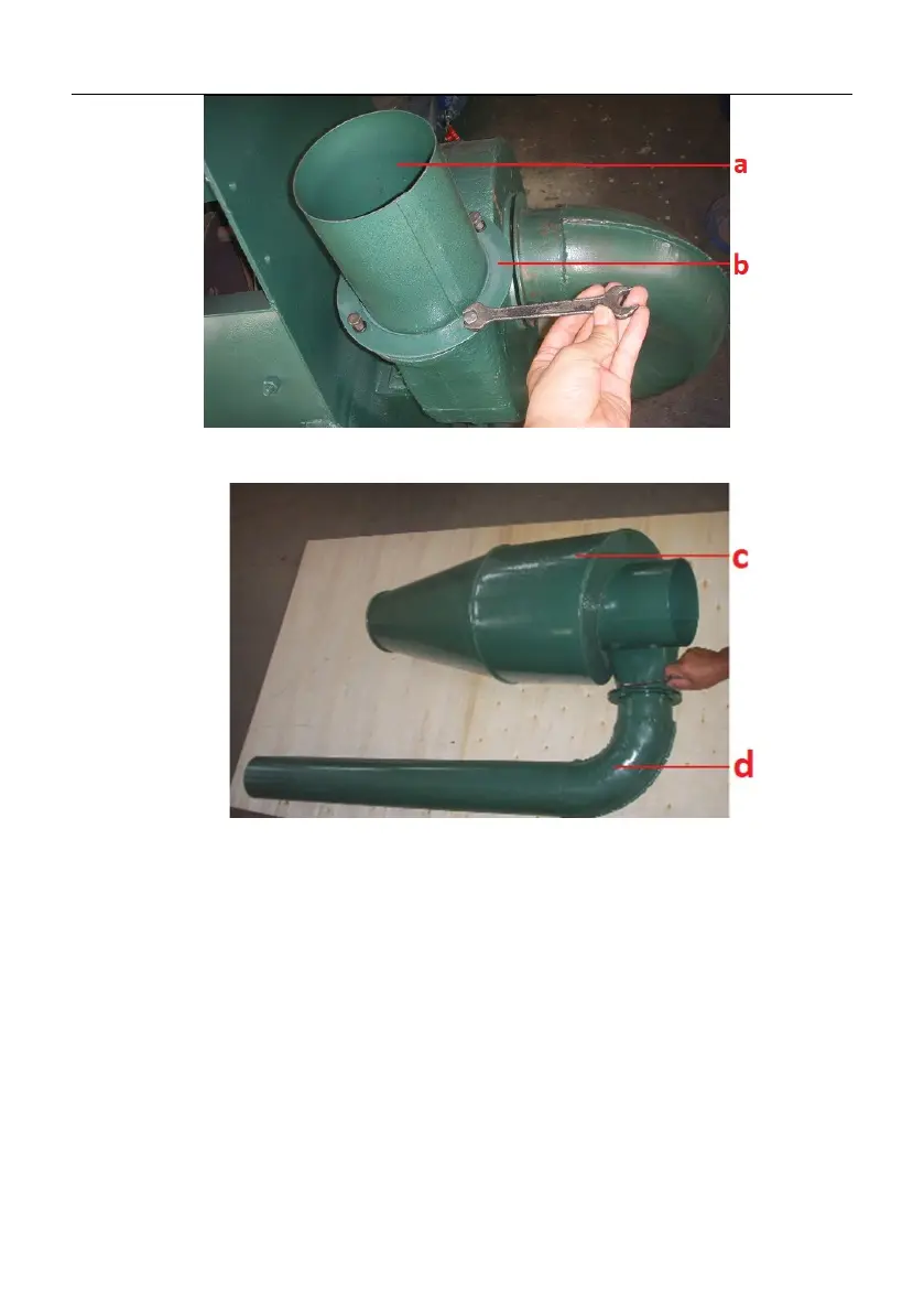 3. Raccorder le boîtier de la centrifugeuse séparatrice (c) au long tube plié à