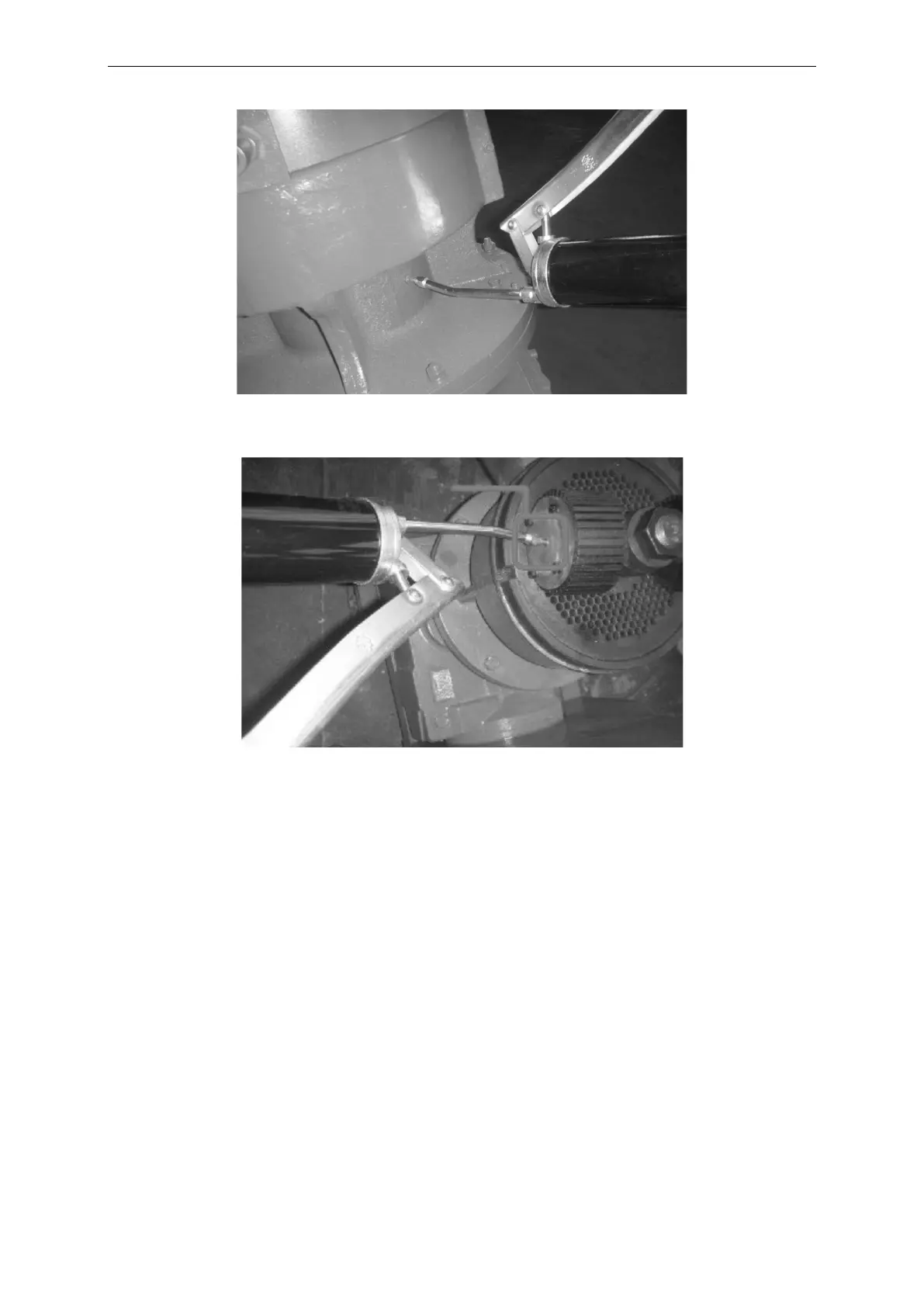 Pressen Sie das Fett mit der im Lieferumfang enthaltenen Fettpresse ein. Führen Sie das Ende der Fettpresse wie