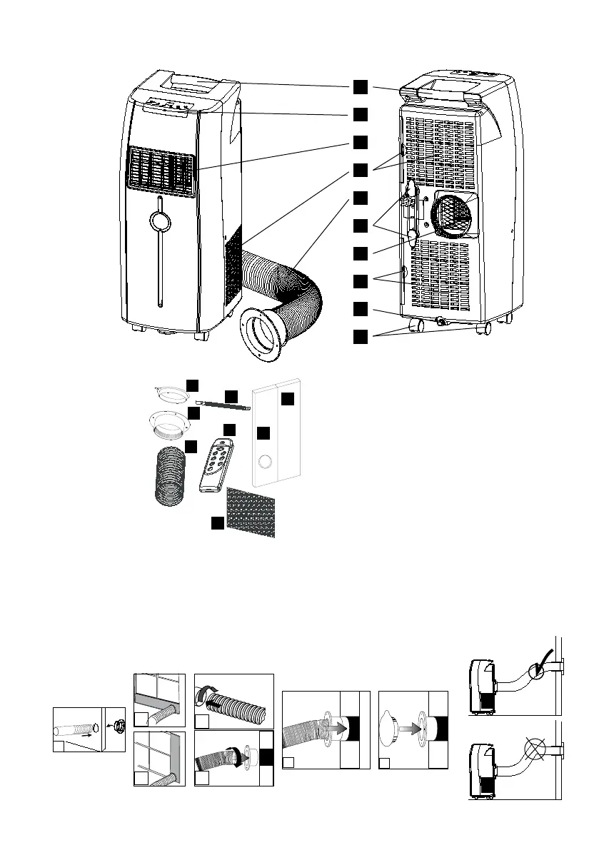 • Luftkonditioneringen måste stå upprätt på ett jämnt underlag.