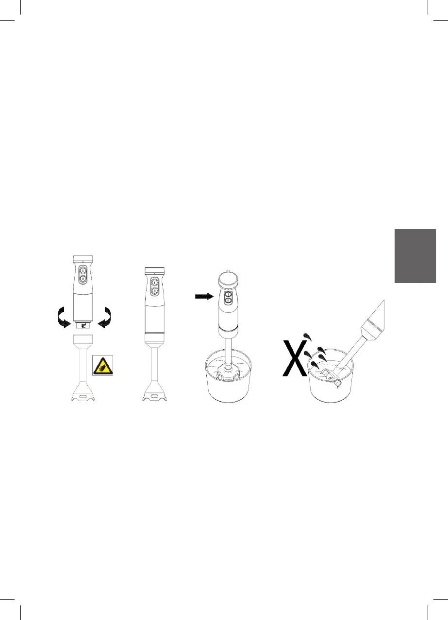 • Indsæt piskeriset i piskerisholderen og drej det derefter på motorenheden, indtil det låser.