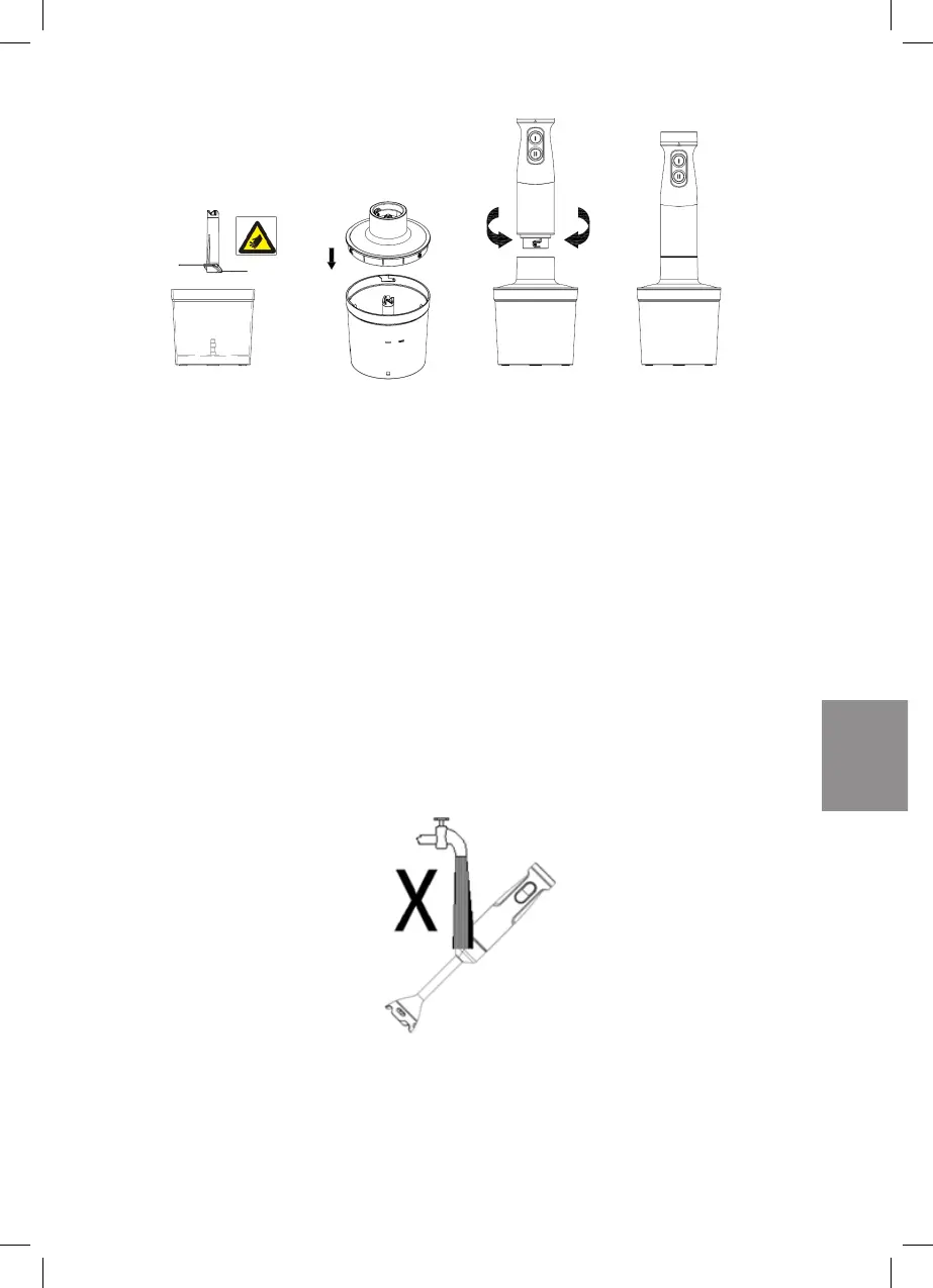 • Die Klingen sind sehr scharf, seien Sie beim Zerlegen und Reinigen vorsichtig.