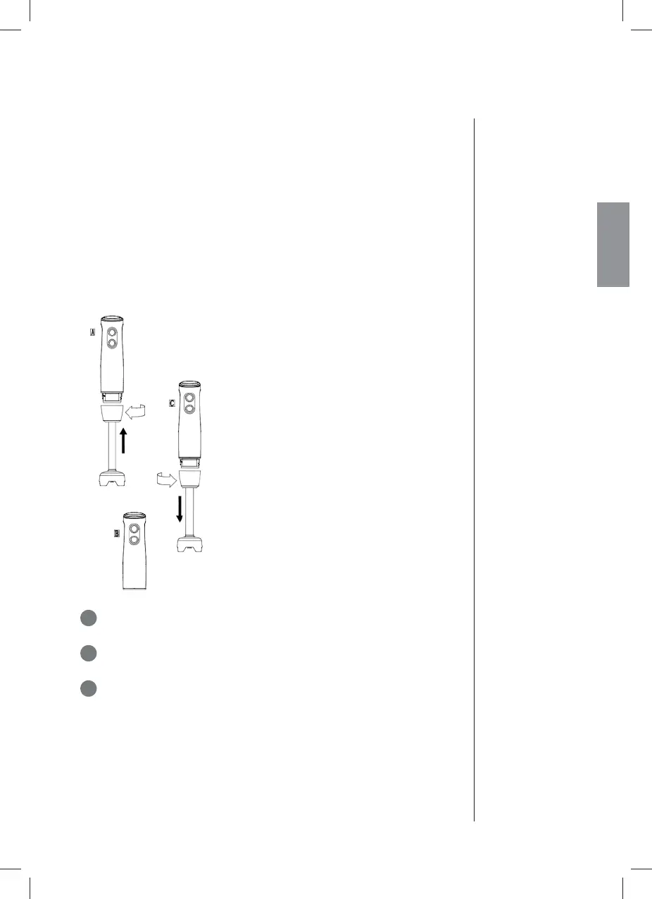 Placera stavmixern i bägaren (E)/annan behållare och tryck på