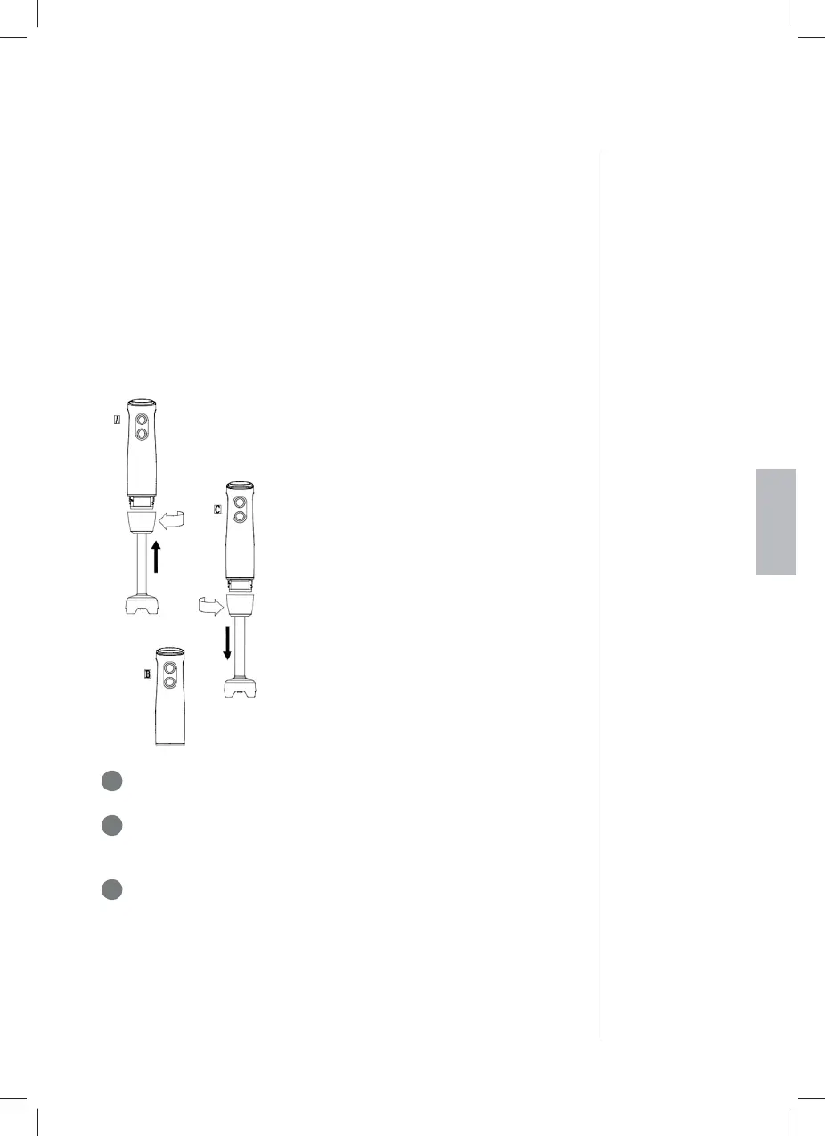 Aseta sauvasekoitin kulhoon (E) tai muuhun astiaan. Käynnistä
