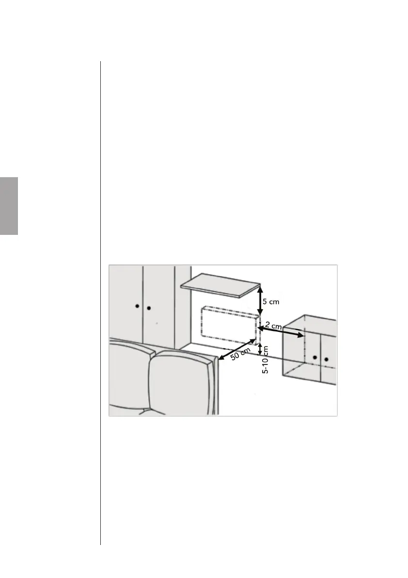 Må ikke monteres direkte under en stikkontakt.