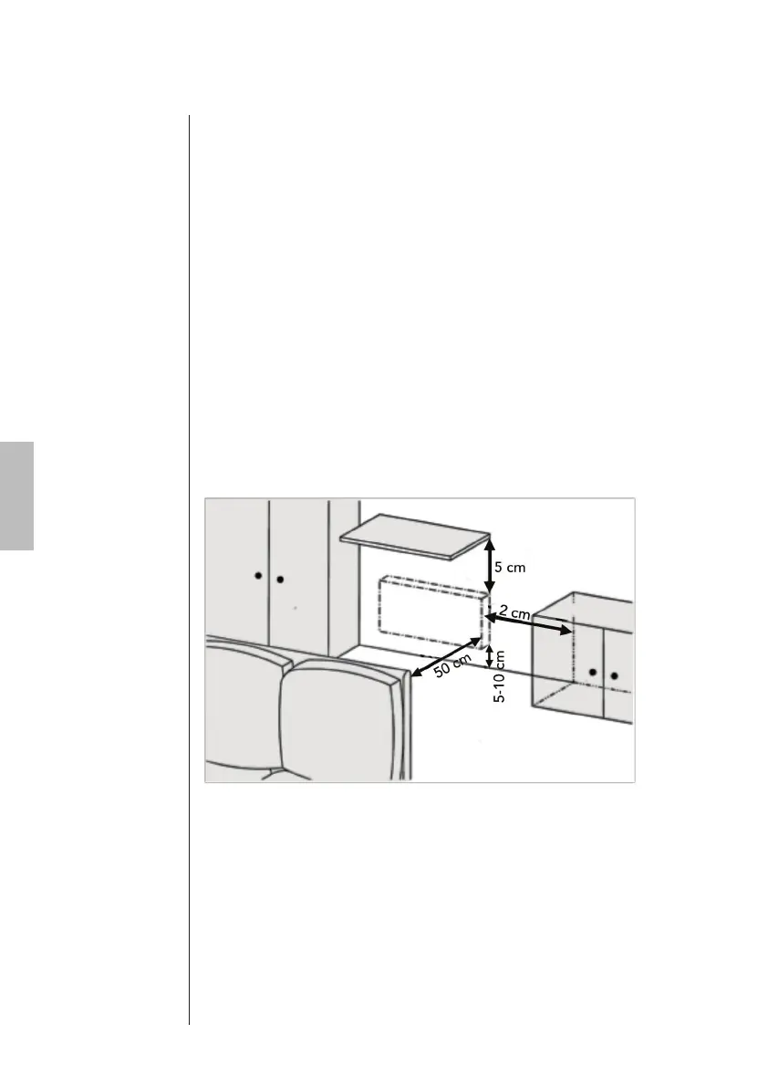 Kun lämmitin asennetaan, kuvassa 1 näkyviä vähimmäisetäisyyksiä