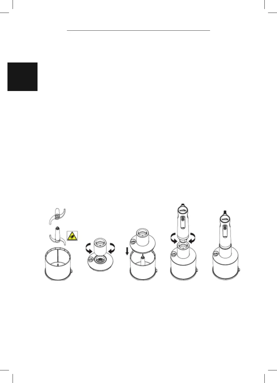1. Plasser S-bladet på den midtre pinnen i hakkebollen.