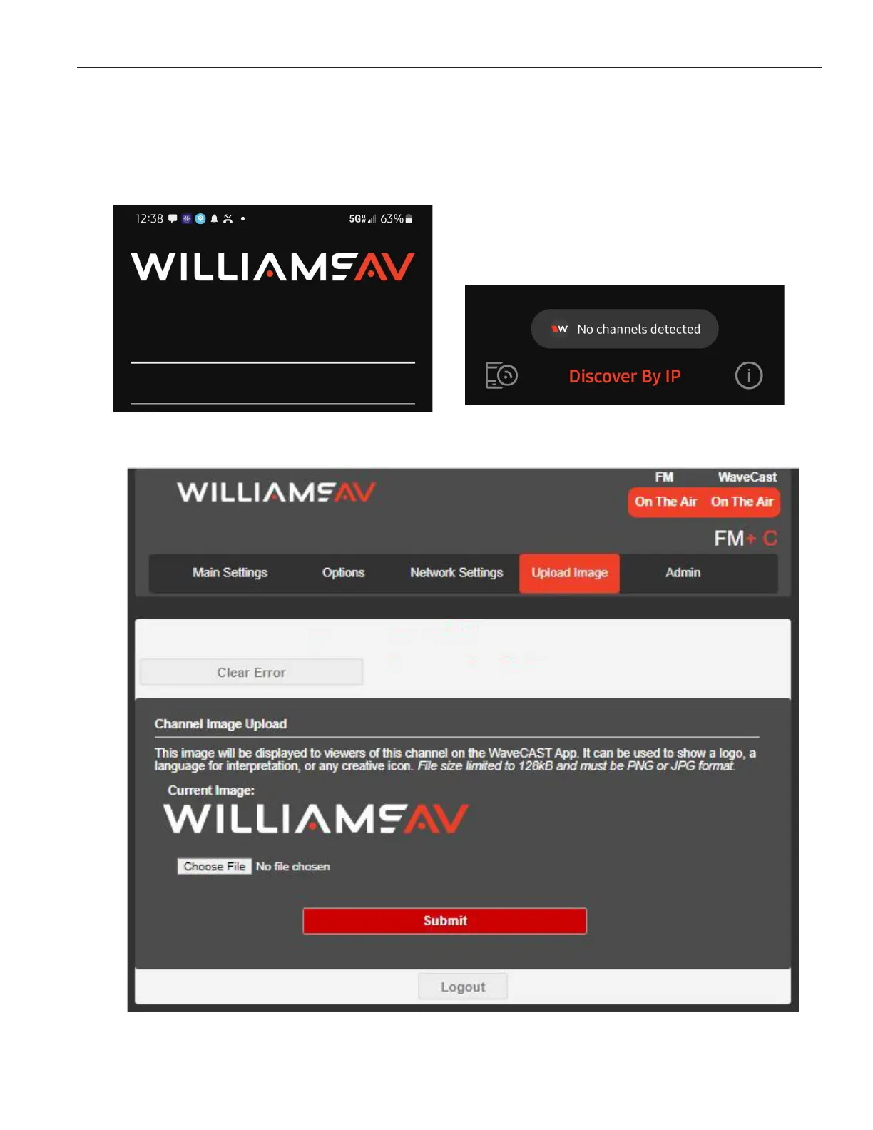 be under 128kB and be in PNG or JPG format. If no custom image is uploaded, the default Williams AV W logo