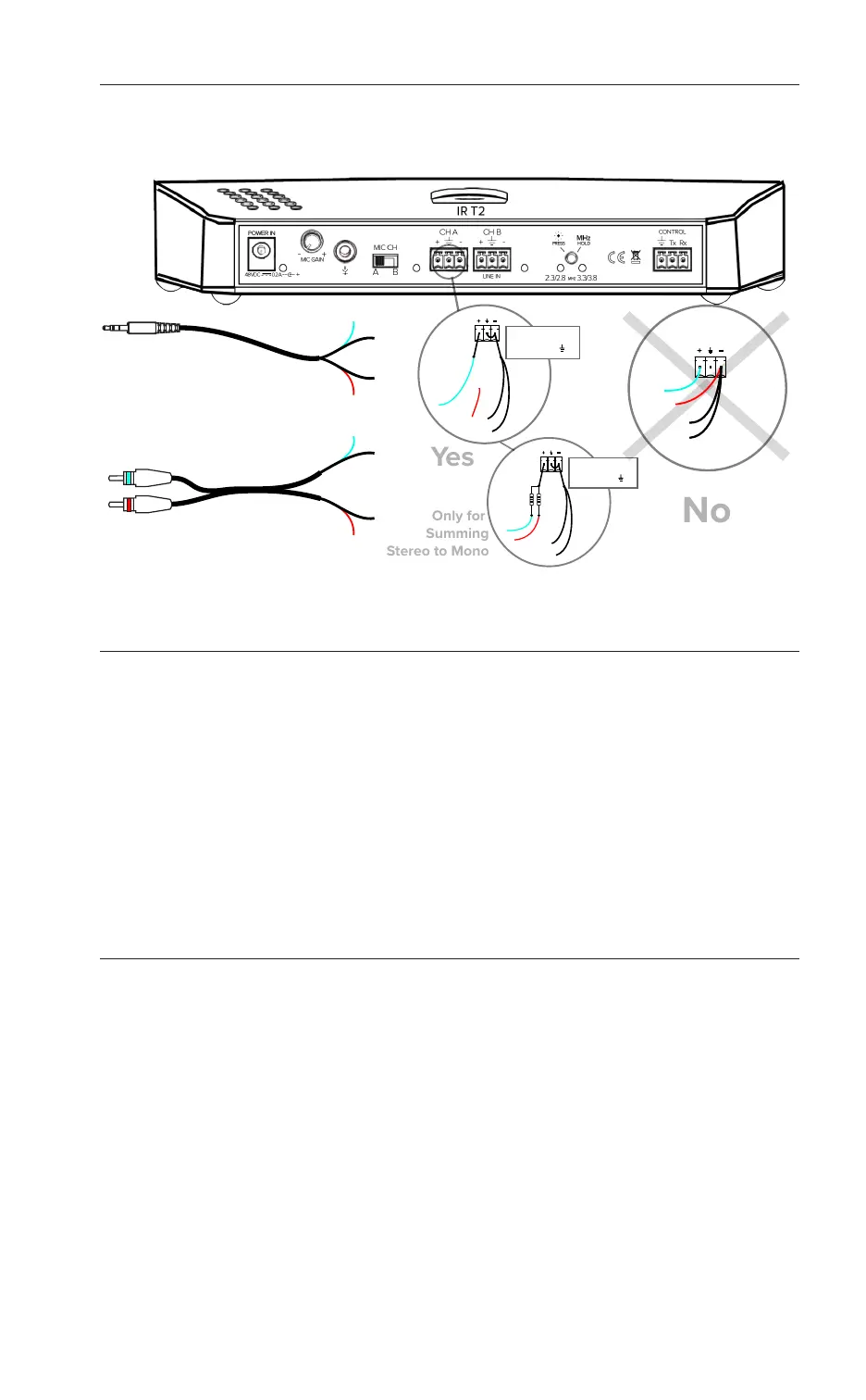 Figure 5: Summing an unbalanced stereo source to a single mono input