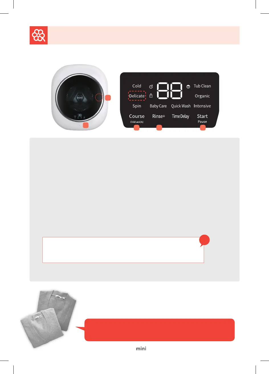 • Limit the size of the laundry load to 1kg when using the Delicate course.