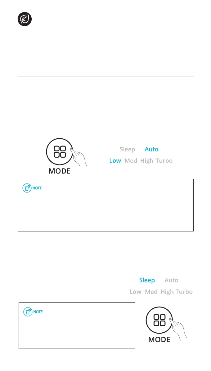 settings. (Auto, Sleep, Low, Medium, High, Turbo)